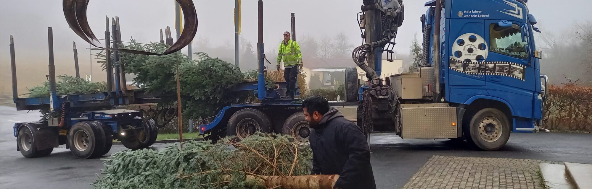 Mit schwerem Gerät und Muskelkraft sind die Tannenbäume aufgestellt worden